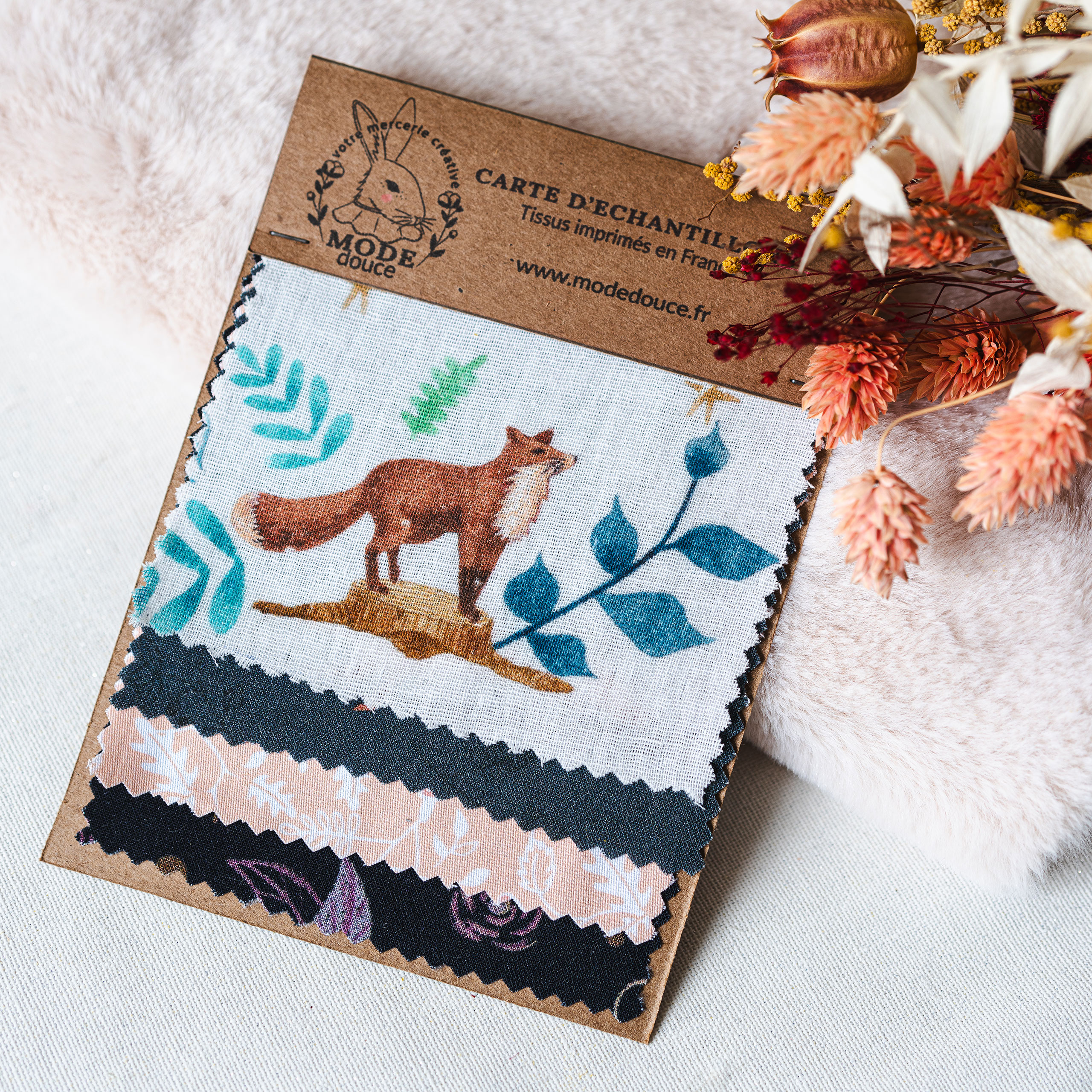 Comment faire pour recevoir une carte d’échantillons : il vous suffit d’envoyer un mail à contact@modedouce.fr avec le nom des tissus choisis, votre nom, prénom et adresse et on s’occupe du reste !