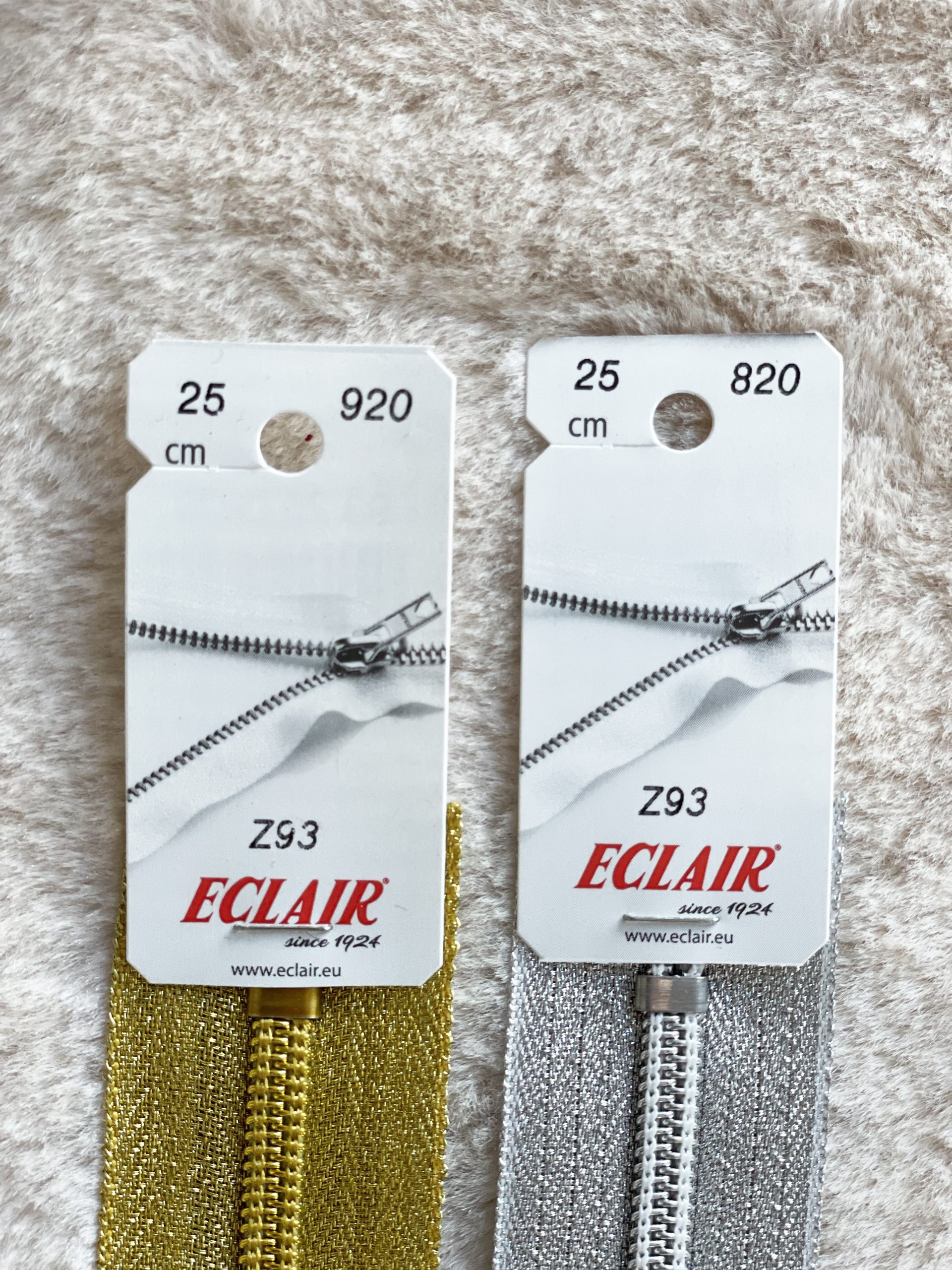 Fermeture à glissière non séparable lurex de la marque ECLAIR, disponible en plusieurs coloris et plusieurs longueurs.