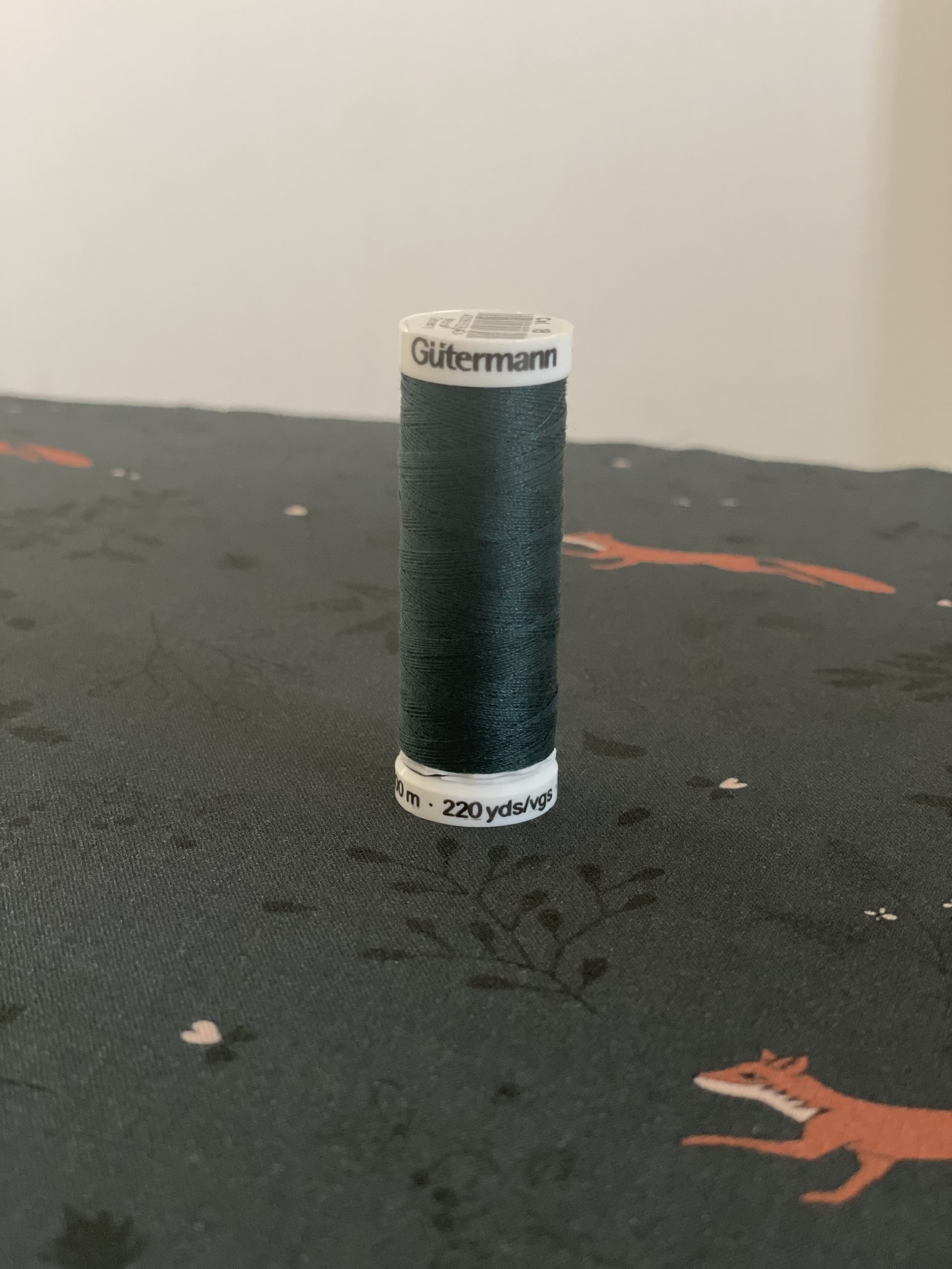 Fil à coudre pour tout textile, de couleur vert foncé, 100 % polyester.